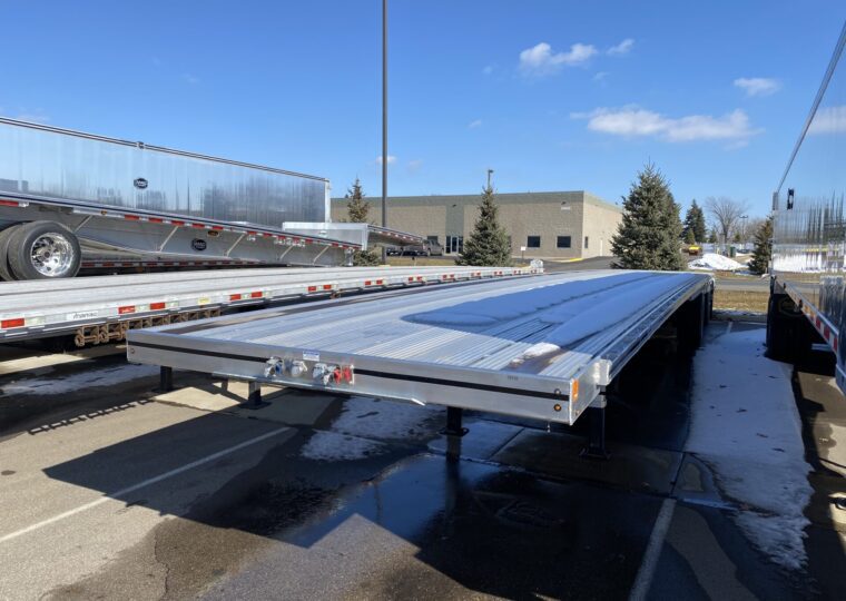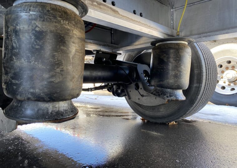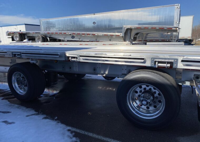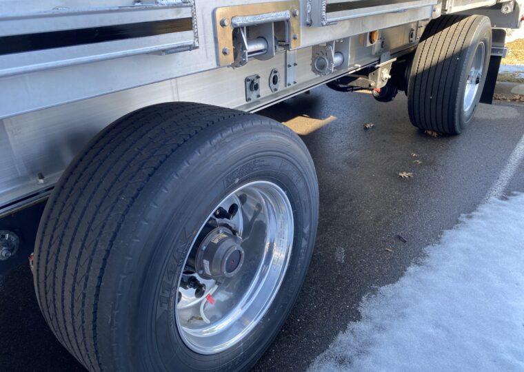 53′ Air Ride, Drum Brakes, Aluminum Wheels, Super Singles, Sliding Spread.